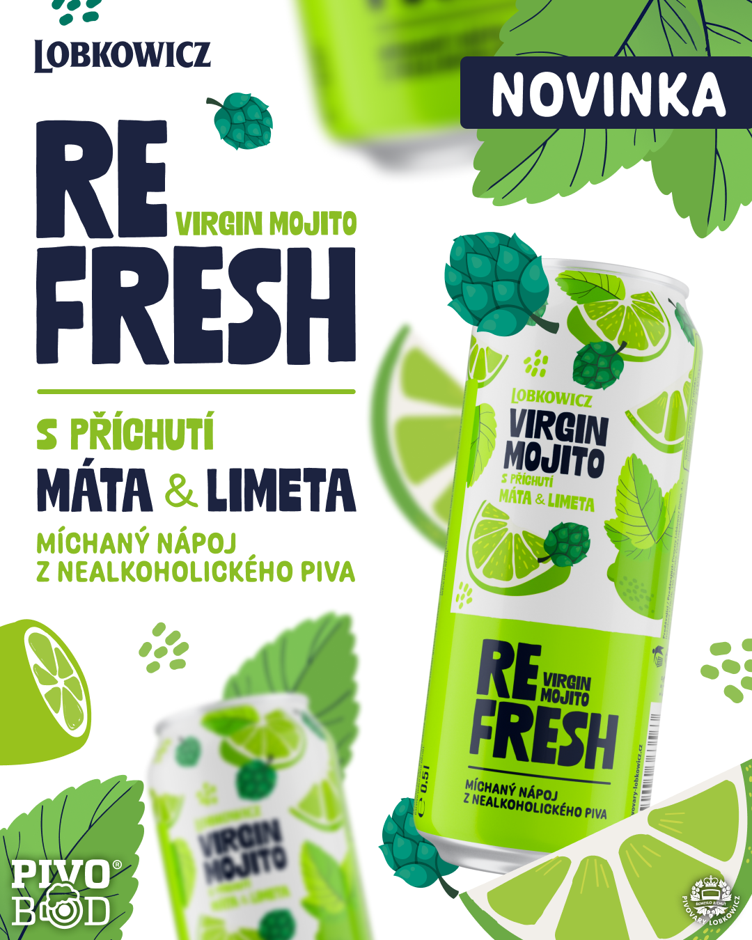 ❗Již teď dostupný na PivoBod: https://www.pivobod.cz/produkt/refresh-virgin-mojito-24-ks-05l-plech/